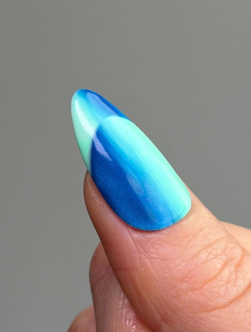 The magnetic pigment adds movement and depth, giving a soft ombré effect that feels elevated but still wearable for everyday clients.